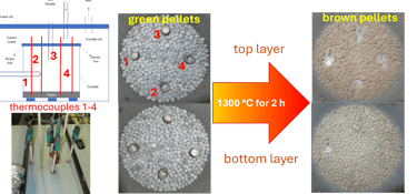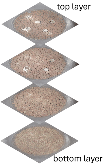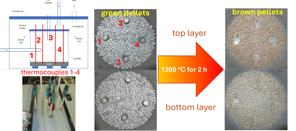 Photos of reduced pellets from 4 pellet-high stack