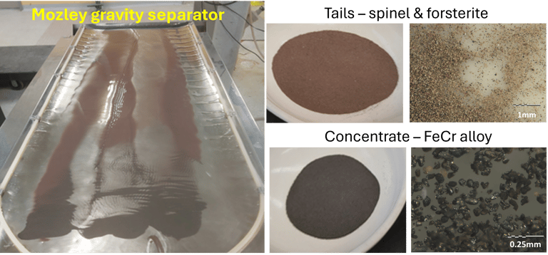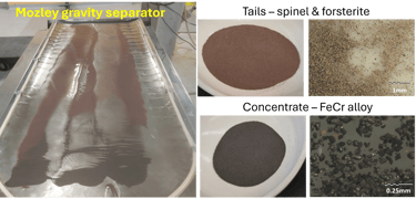 Products of DRC are solid ferrochrome and slag particles which are separated by conventional mineral processing techniques