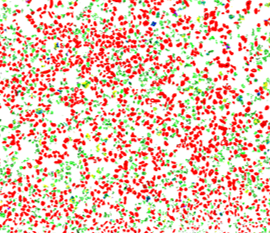 Red: alloy Green: spinel Yellow: forsterite