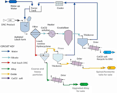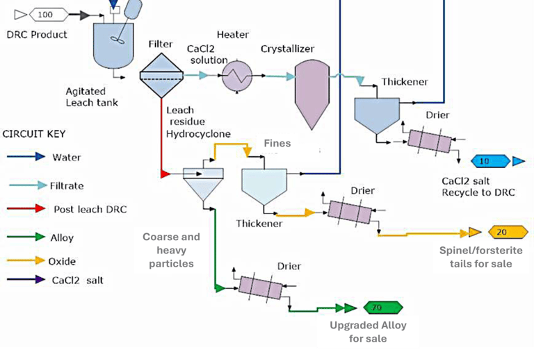 Alloy particles are readily separated and recovered from the furnace products through conventional classification and gravity separation techniques with alloy recovery figures reaching 90% for alloy grades of ~95% for rougher concentrates. Addition of a cleaner circuit such as MGS, LIMS and/or Falcon will enhance the grade-recovery figures.