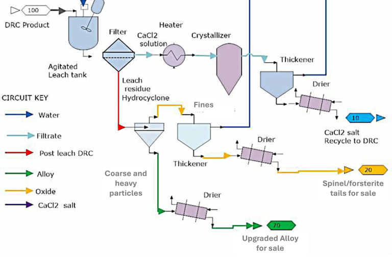 Recovery figures reaching 90% for alloy grades of ~95% for rougher concentrates.