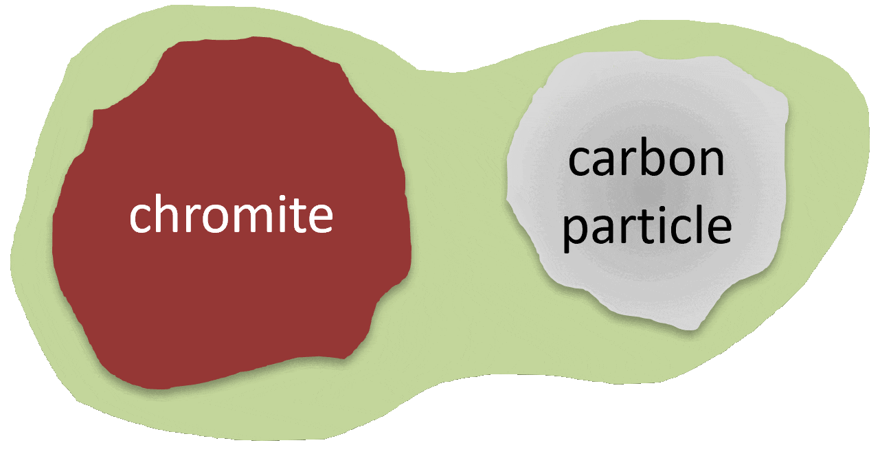 Shrinking cores of chromite and carbon particles