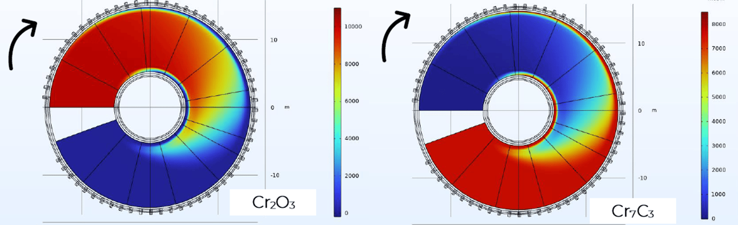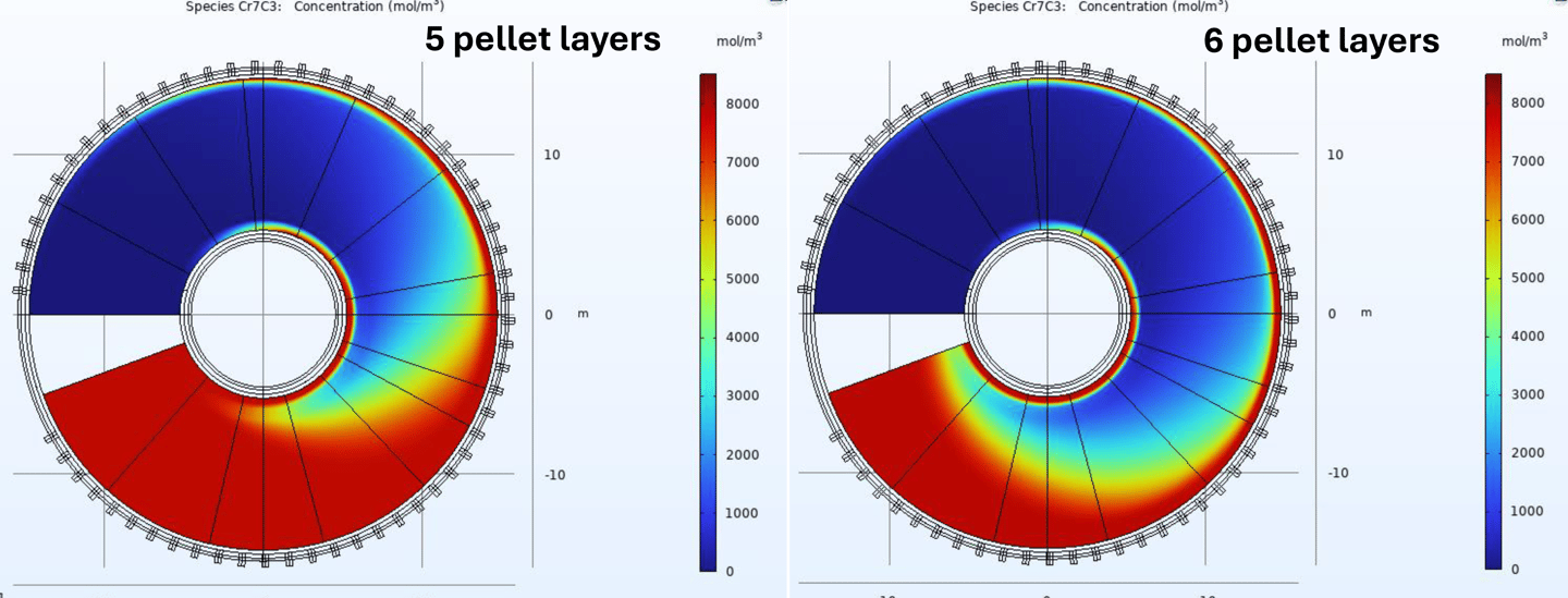 Cr7C3 concentrations with 5 and 6 pellet layers – Complete metallization with 5 pellet layers at the exit
